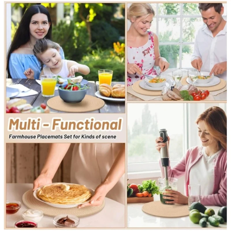 Cotton Dining Table Round Placemat Mats Set of 4