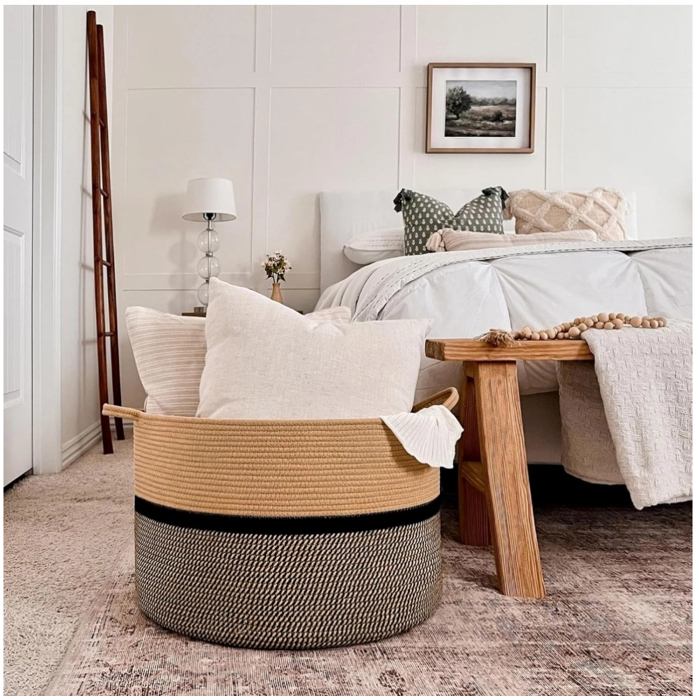 Cotton Dori 16×14 Inch Storage Basket For Clothes (Beige-Beige Black)