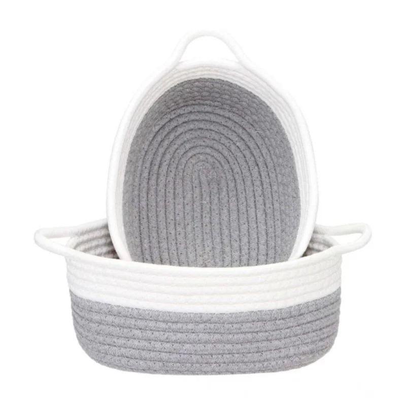 Cotton Grey White 2 Pcs Storage Basket For Clothes