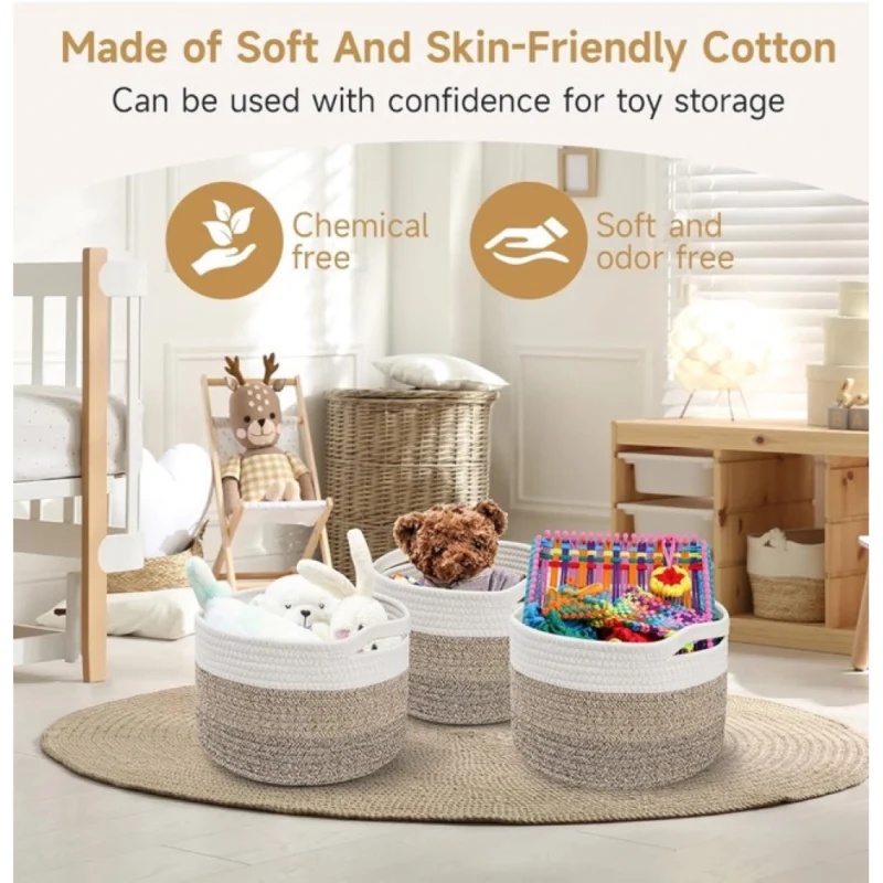 Cotton Kidi 9×7 Inch Pack of 3 Storage Basket For Clothes