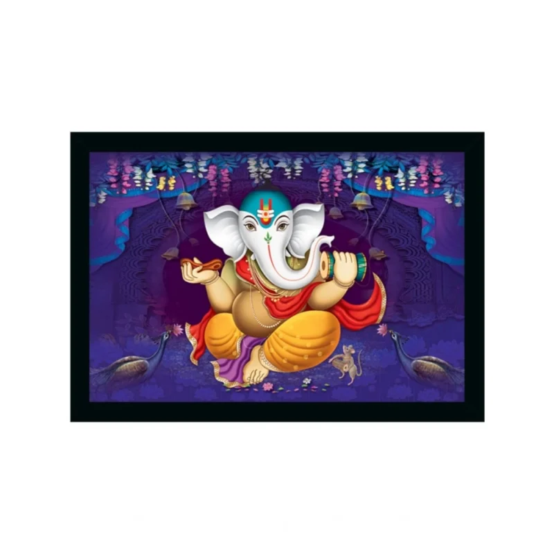 Ganesh Photo with Synthetic Photo Frame (Multicolor)