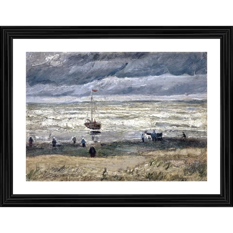 Beach at Scheveningen in Stormy Weather 1882 Painting With Wood Photo Frame (Multicolor)