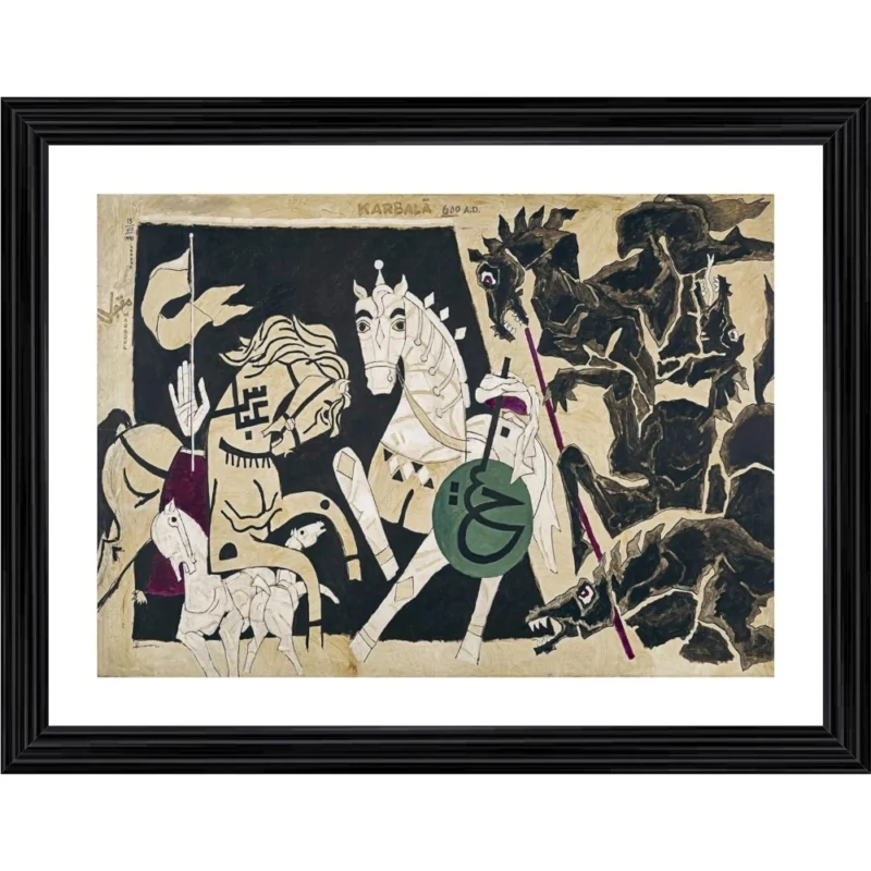 Five Horses and the Battle Painting With Wood Photo Frame