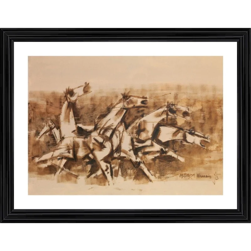 Four Horses and the Battle Painting With Wood Photo Frame