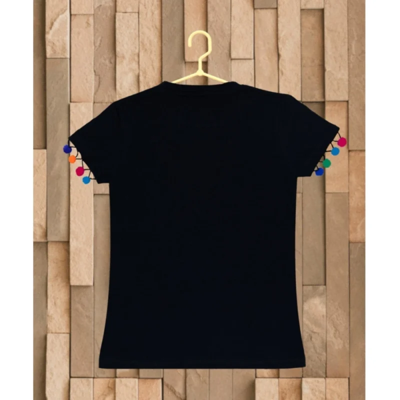 Girl's Casual Short Sleeve Printed Cotton T Shirt (Black)