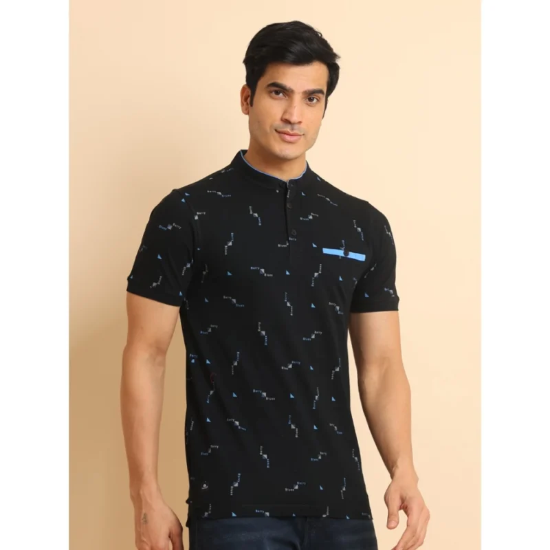 Men’s Casual Cotton Printed Mandarin Collar Half Sleeve T-Shirt