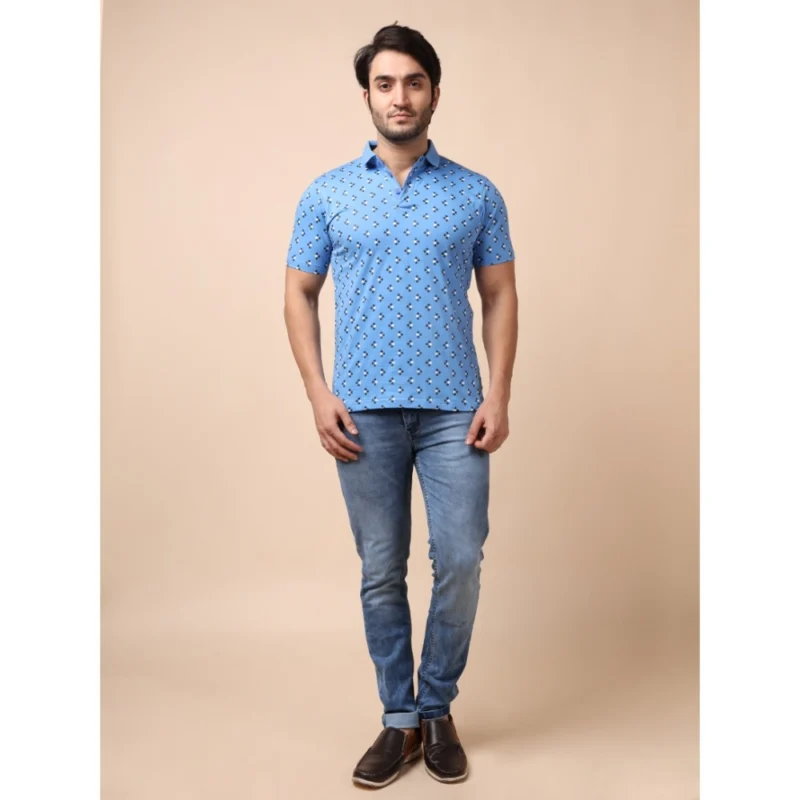 Men’s Casual Cotton Printed Polo Neck Half Sleeve T-Shirt