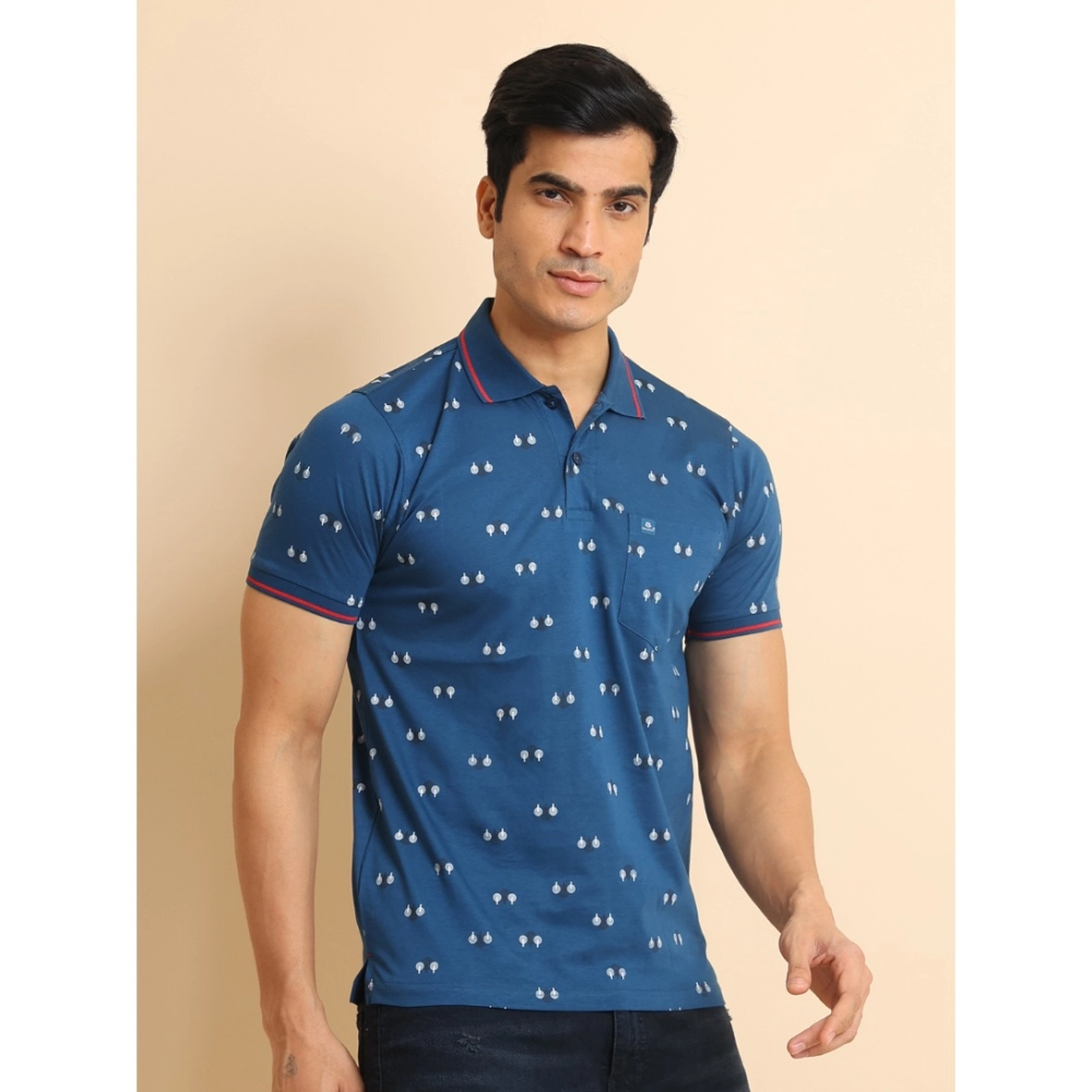 Men’s Casual Cotton Printed Polo Neck Half Sleeve T-Shirt