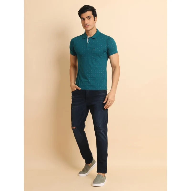 Men’s Casual Cotton Printed Polo Neck Half Sleeve T-Shirt (Green)