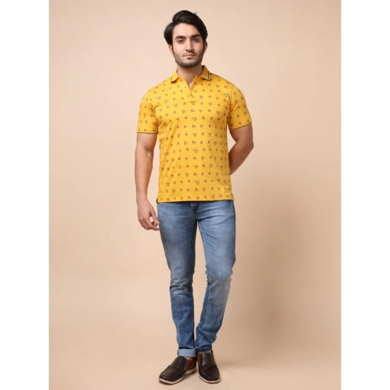 Men’s Casual Cotton Printed Polo Neck Half Sleeve T-Shirt