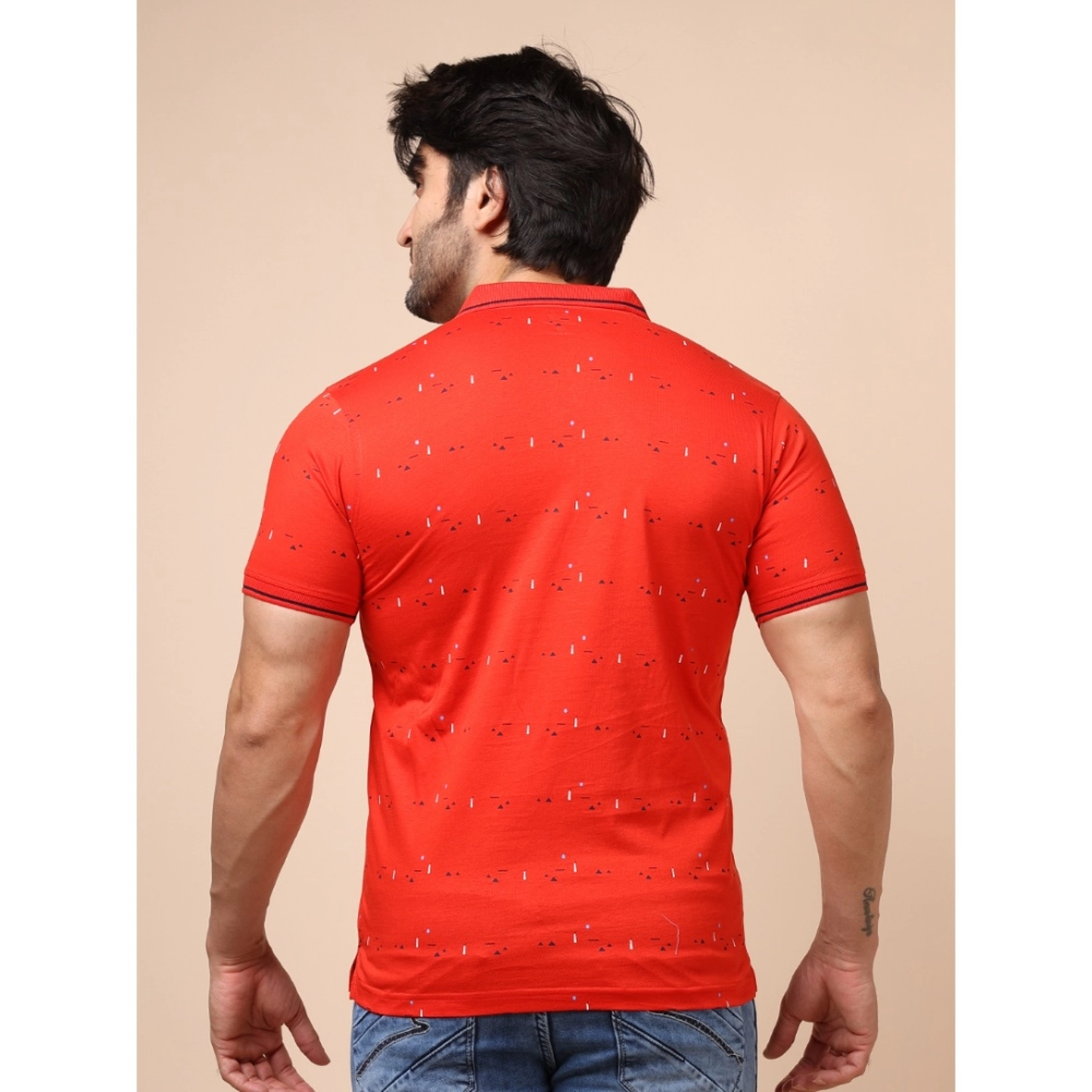 Men’s Casual Cotton Printed Polo Neck Half Sleeve T-Shirt (Red)