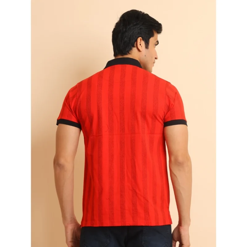 Men’s Casual Cotton Printed Polo Neck Half Sleeve T-Shirt (Red)
