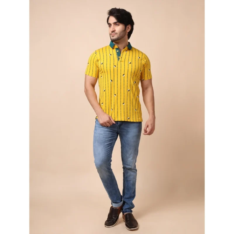 Men’s Casual Cotton Printed Polo Neck Half Sleeve T-Shirt