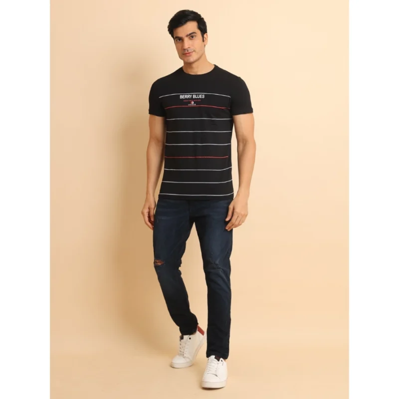 Men’s Casual Cotton Printed Round Neck Half Sleeve T-Shirt (Black)