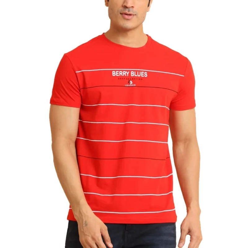 Men’s Casual Cotton Printed Round Neck Half Sleeve T-Shirt (Red)