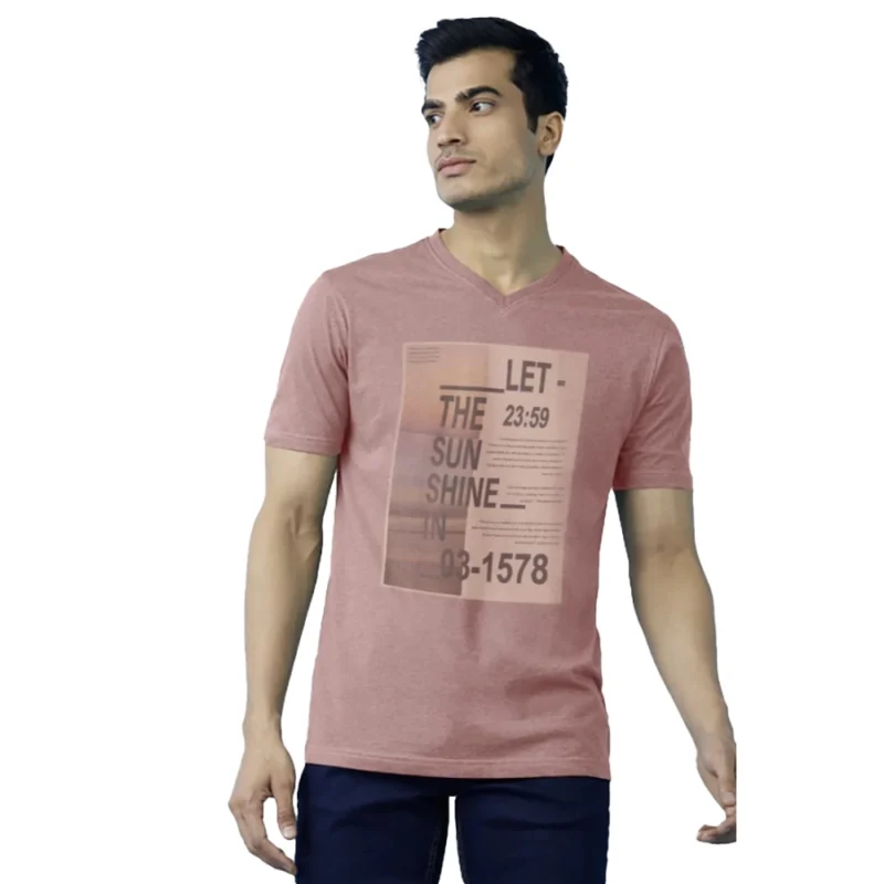 Men’s?Casual Half sleeve Digital Printed Cotton Crew Neck T-shirt (Coral)