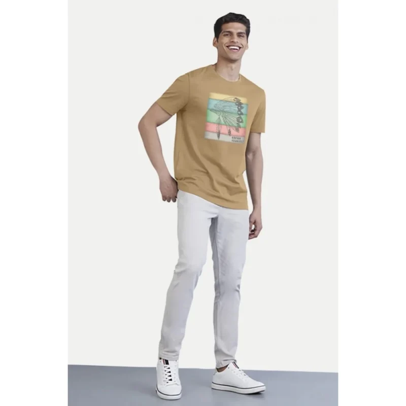 Men’s?Casual Half sleeve Digital Printed Cotton Crew Neck T-shirt (Sand)