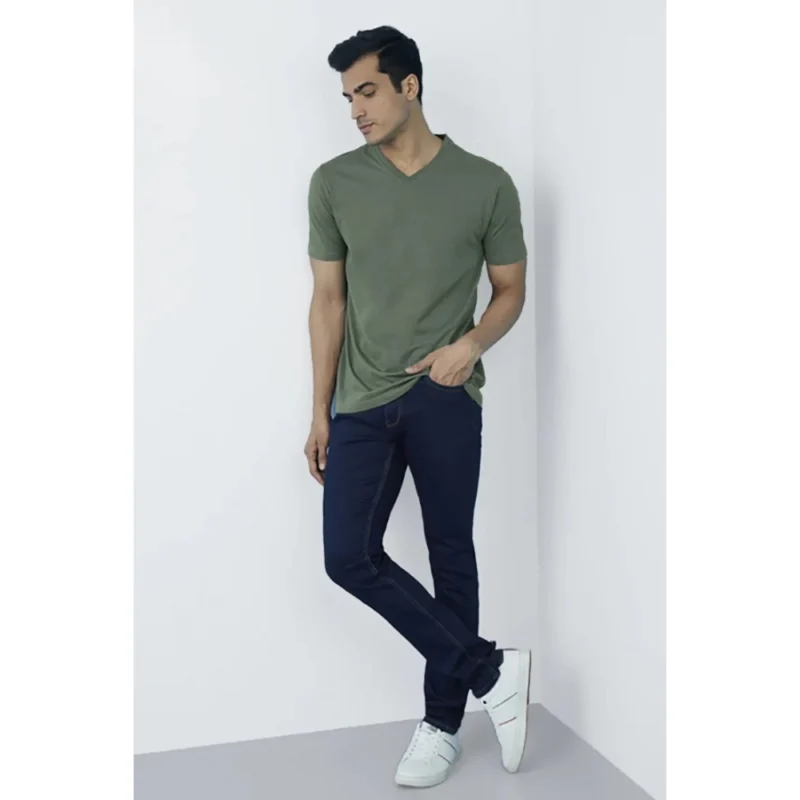 Men’s?Casual Half sleeve Solid?Cotton V Neck T-shirt (Green)