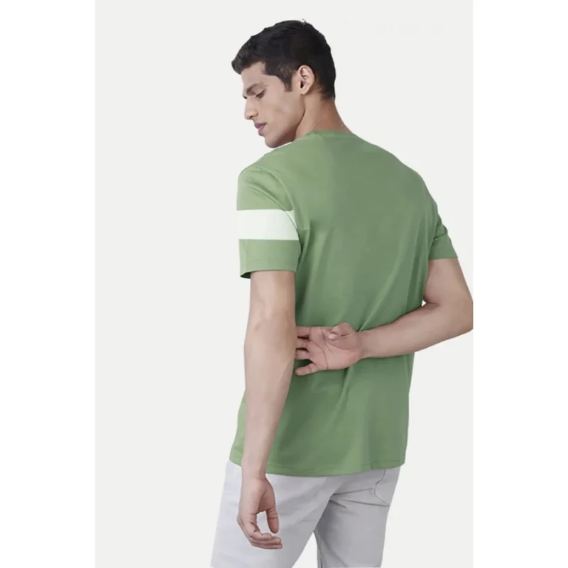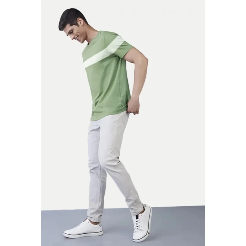 Men’s?Casual Half sleeve Stripped Cotton Crew Neck T-shirt (Light Green)