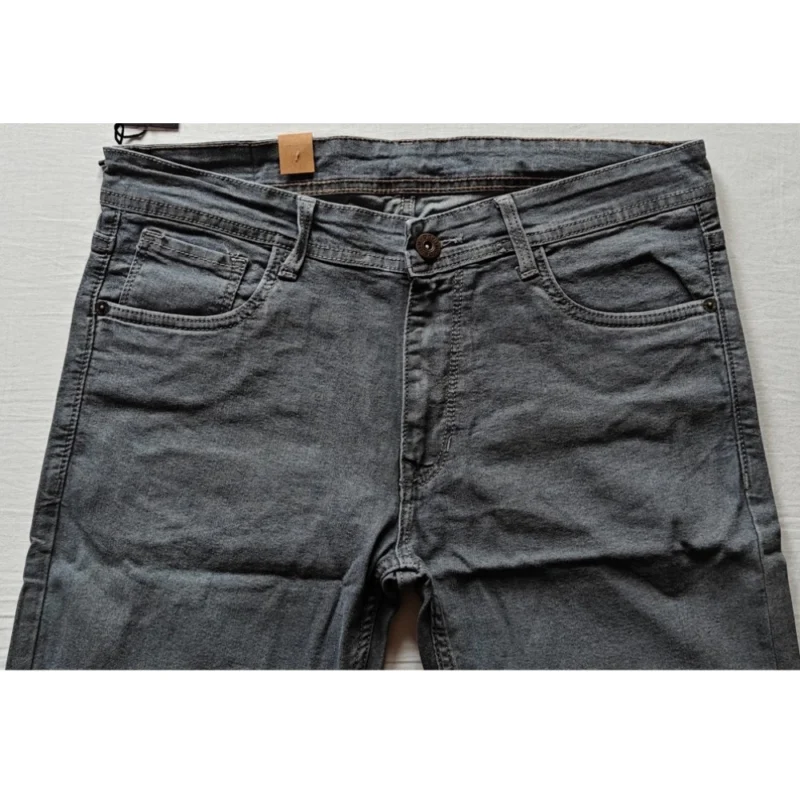 Men’s Cotton Blended Solid Tapered Jeans (Grey)