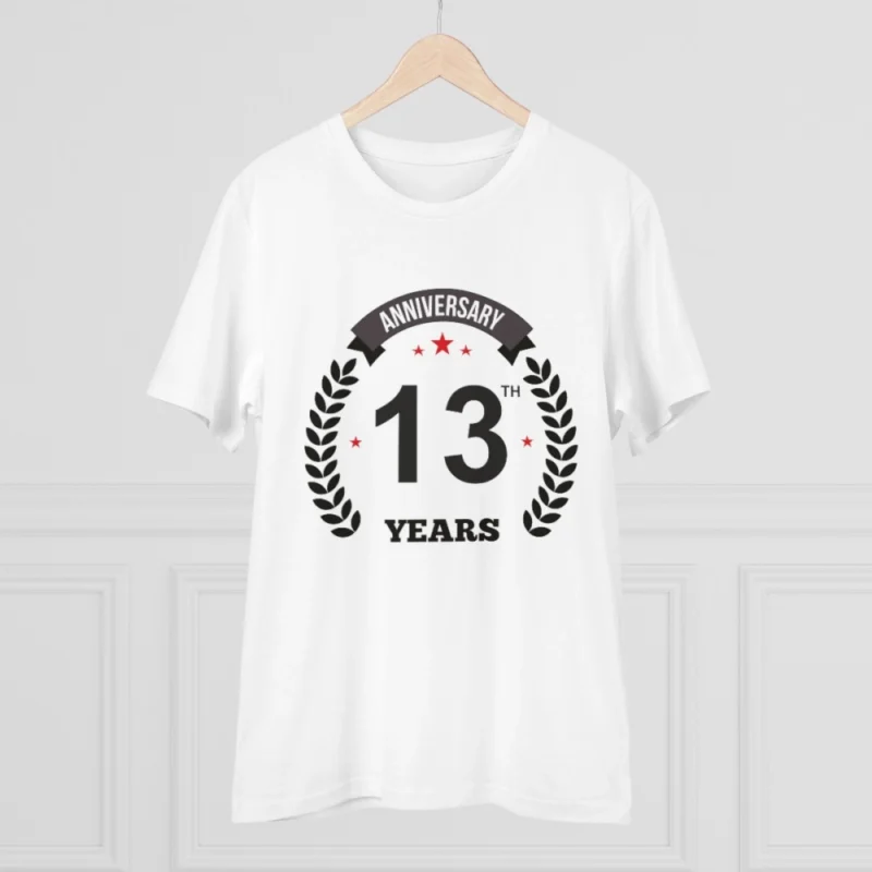 Men’s PC Cotton 13th Anniversary Printed T Shirt (Color: White, Thread Count: 180GSM)