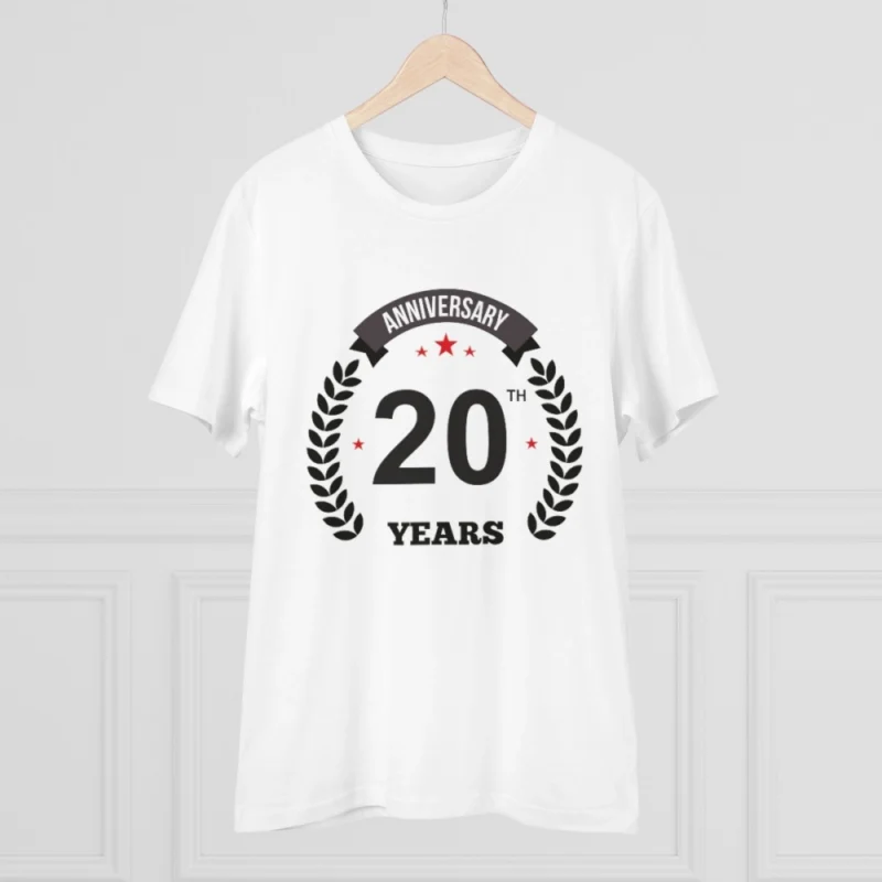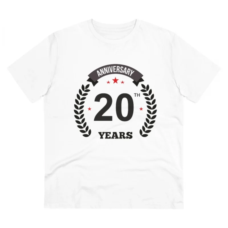 Men's PC Cotton 20th Anniversary Printed T Shirt (Color: White, Thread Count: 180GSM)