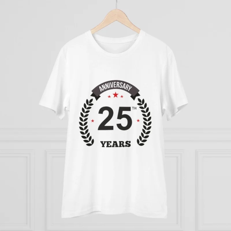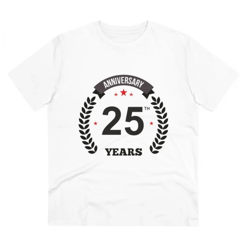Men’s PC Cotton 25th Anniversary Printed T Shirt (Color: White, Thread Count: 180GSM)