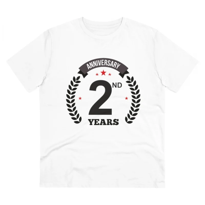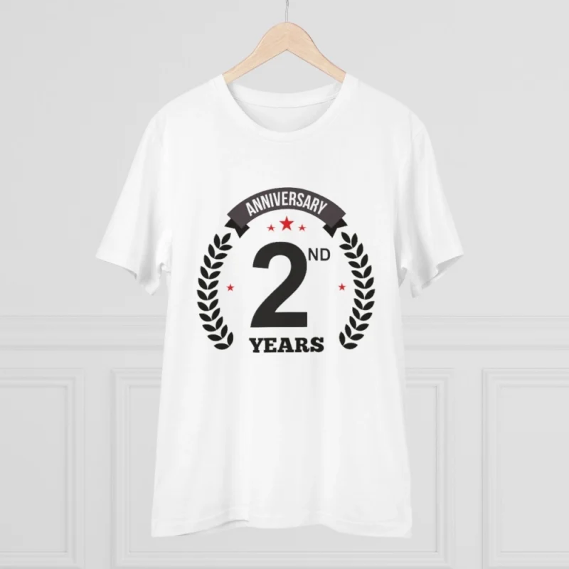 Men’s PC Cotton 2nd Anniversary Printed T Shirt (Color: White, Thread Count: 180GSM)