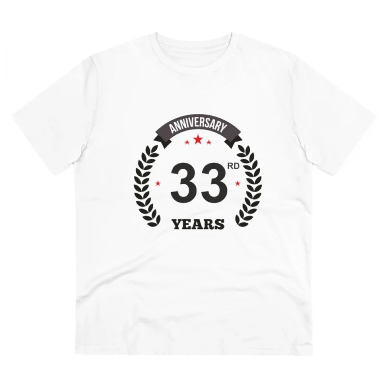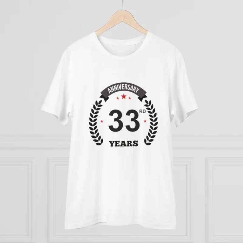 Men’s PC Cotton 33rd Anniversary Printed T Shirt (Color: White, Thread Count: 180GSM)