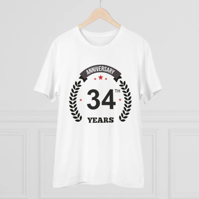 Men's PC Cotton 34th Anniversary Printed T Shirt (Color: White, Thread Count: 180GSM)