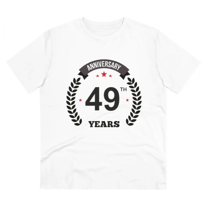 Men’s PC Cotton 49th Anniversary Printed T Shirt (Color: White, Thread Count: 180GSM)
