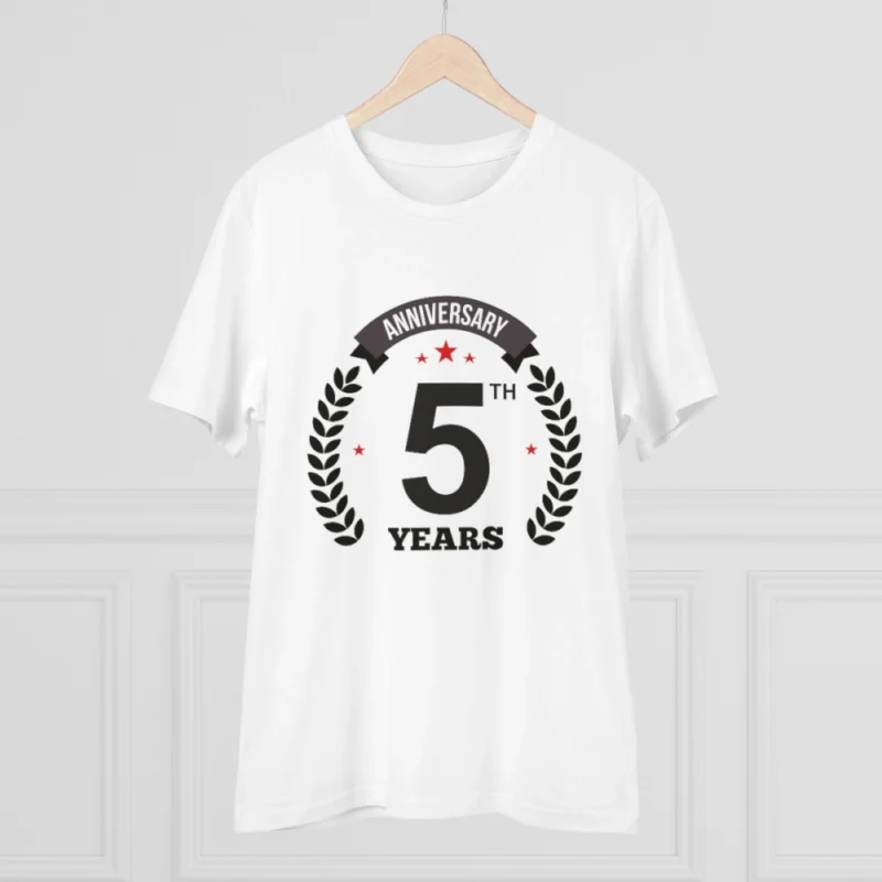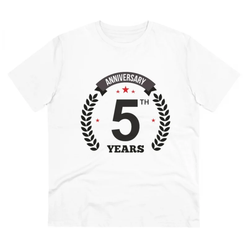 Men’s PC Cotton 5th Anniversary Printed T Shirt (Color: White, Thread Count: 180GSM)