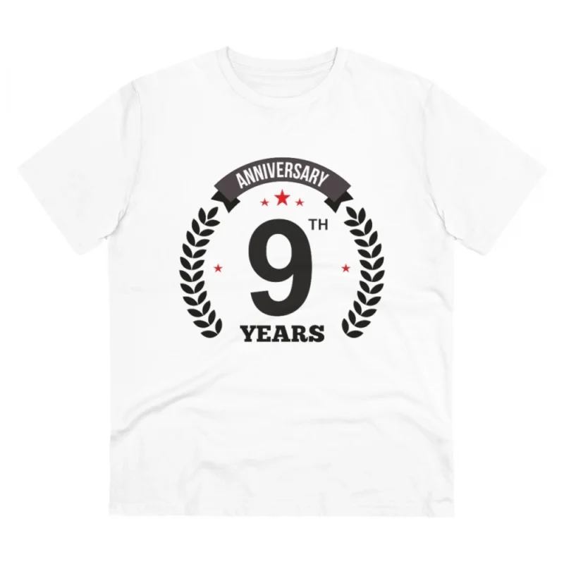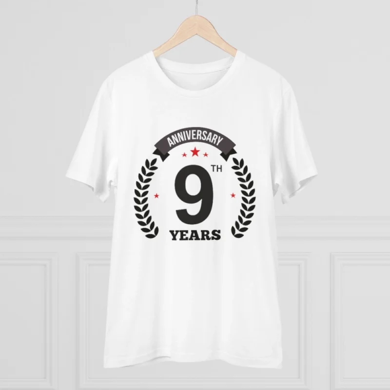 Men’s PC Cotton 9th Anniversary Printed T Shirt (Color: White, Thread Count: 180GSM)
