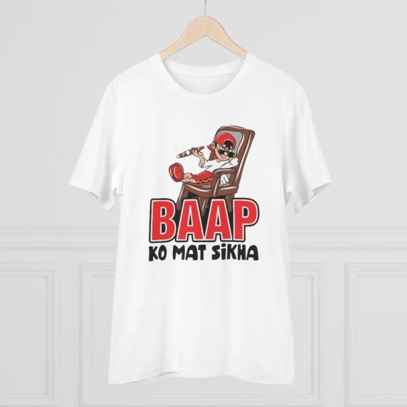 Men’s PC Cotton Baap Ko Mat Sikha Printed T Shirt (Color: White, Thread Count: 180GSM)