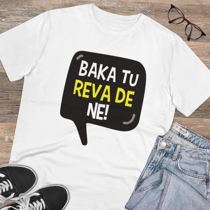 Men’s PC Cotton Baka Tu Reva De Printed T Shirt (Color: White, Thread Count: 180GSM)