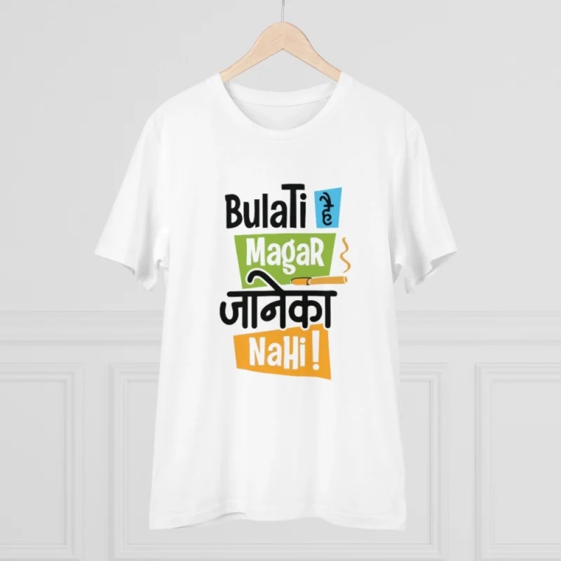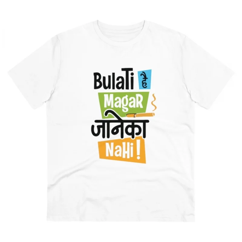 Men’s PC Cotton Bulati Hai Magar Jane Ka Nahi Printed T Shirt (Color: White, Thread Count: 180GSM)