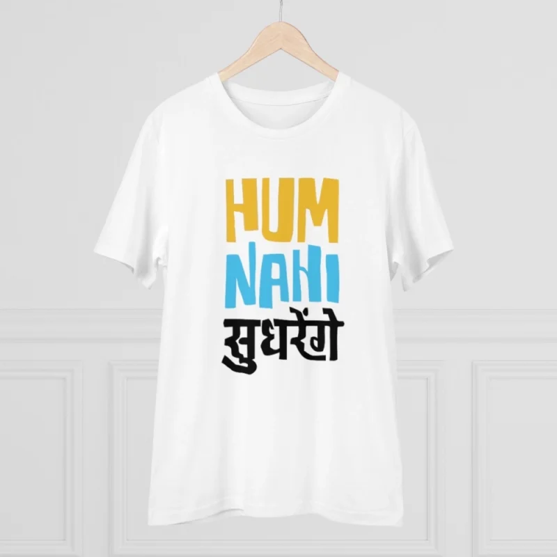 Men’s PC Cotton Hum Nahi Sudhrege Printed T Shirt (Color: White, Thread Count: 180GSM)