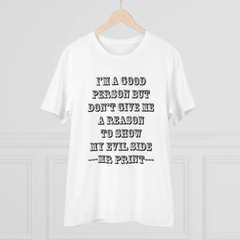 Men’s PC Cotton I Am Good Person Printed T Shirt (Color: White, Thread Count: 180GSM)
