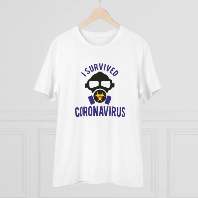 Men’s PC Cotton I Survived Coronavirus Printed T Shirt (Color: White, Thread Count: 180GSM)