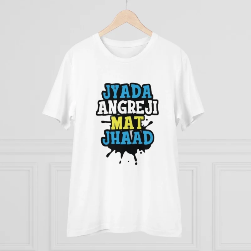 Men’s PC Cotton Jyada Angreji Mat Jhaad Printed T Shirt (Color: White, Thread Count: 180GSM)