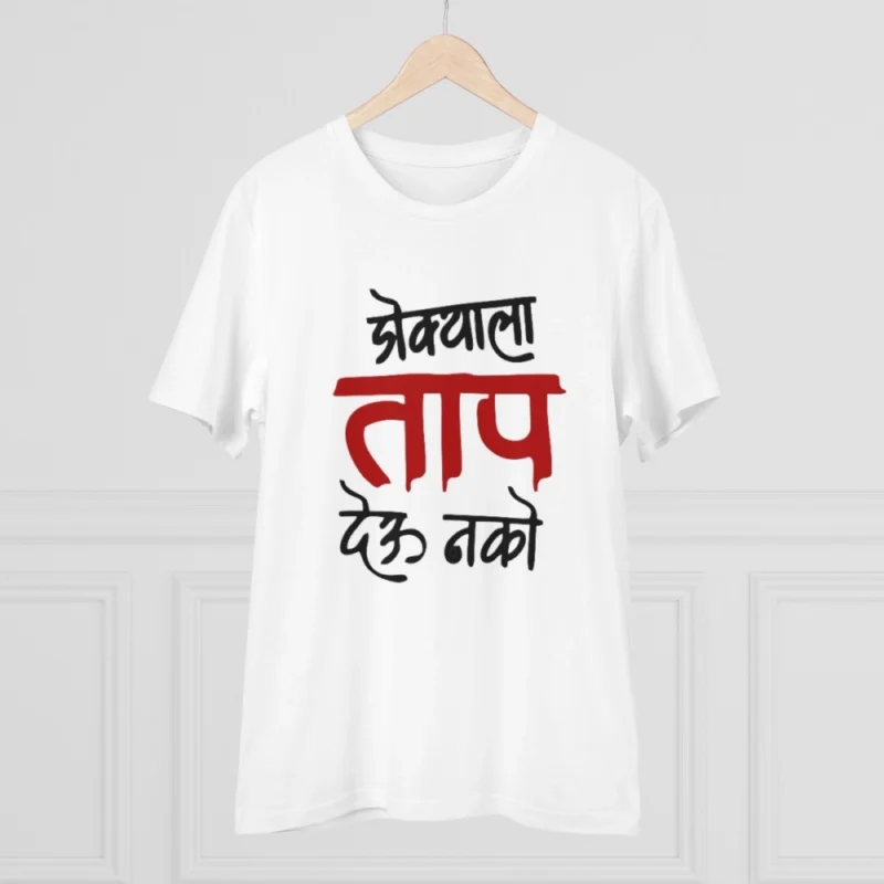 Men’s PC Cotton Marathi Desing Printed T Shirt (Color: White, Thread Count: 180GSM)