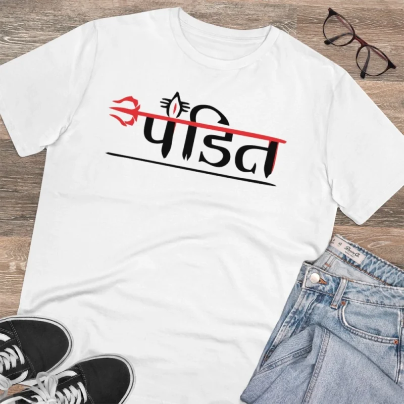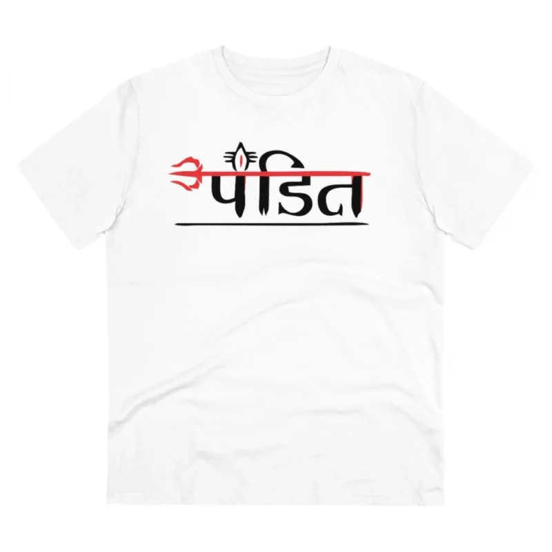Men’s PC Cotton Pandit Printed T Shirt (Color: White, Thread Count: 180GSM)