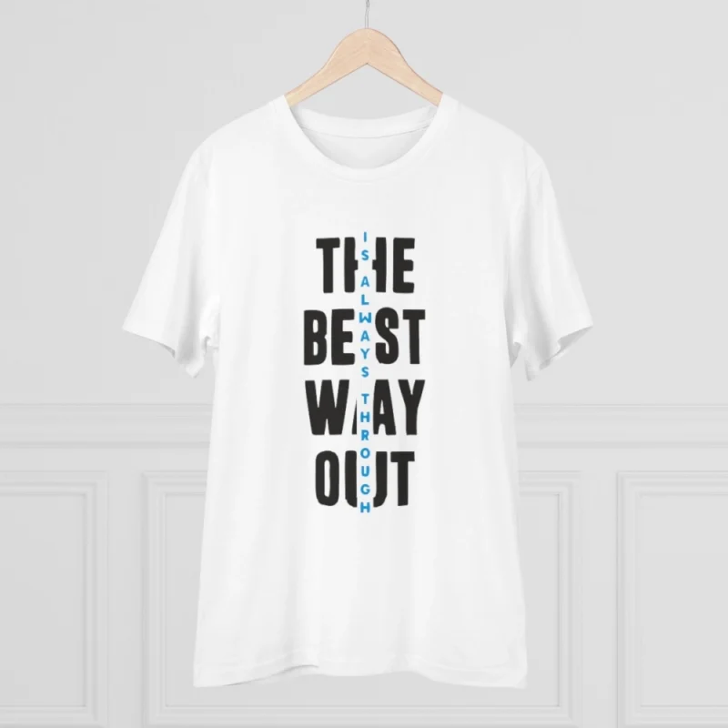 Men’s PC Cotton The Best Way Out Printed T Shirt (Color: White, Thread Count: 180GSM)