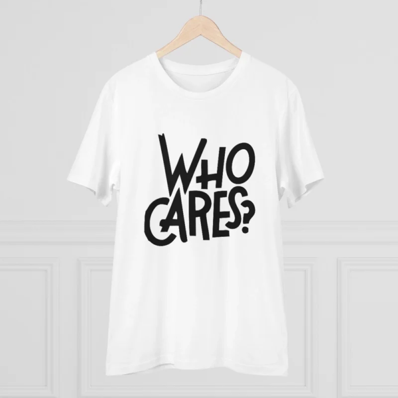 Men’s PC Cotton Who Cares Printed T Shirt (Color: White, Thread Count: 180GSM)