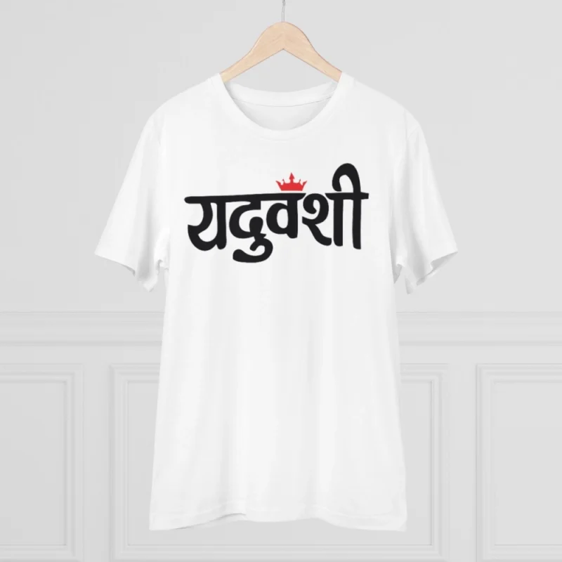 Men’s PC Cotton Yaduvanshi Printed T Shirt (Color: White, Thread Count: 180GSM)