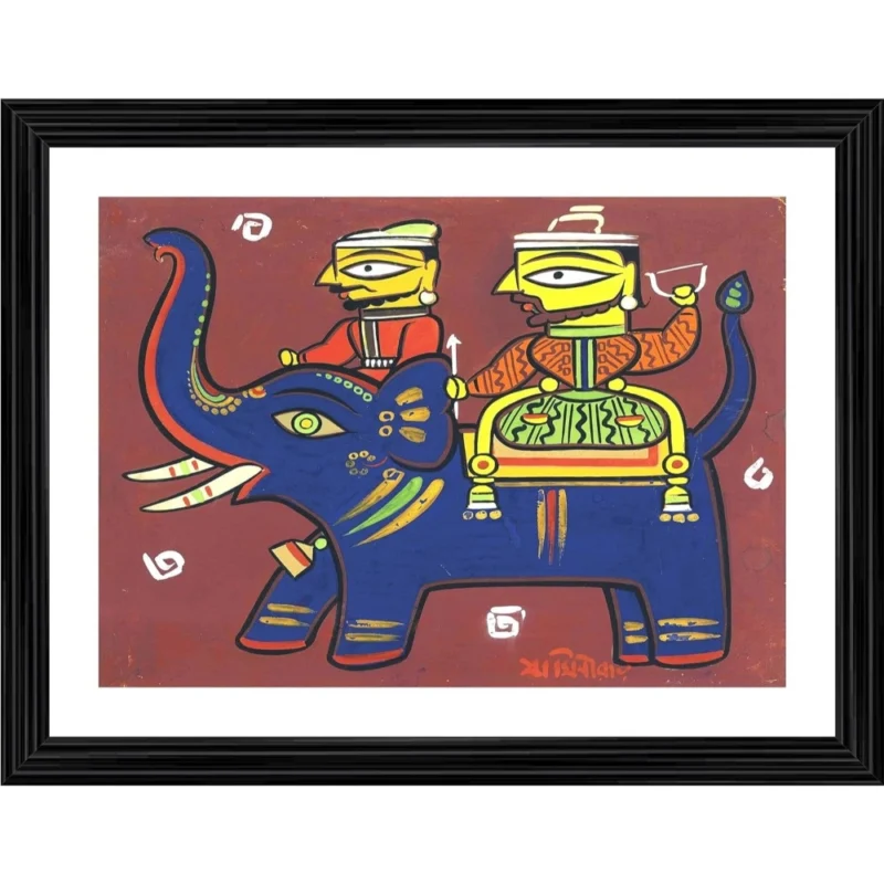 Two Hunters with Elephant Painting With Wood Photo Frame