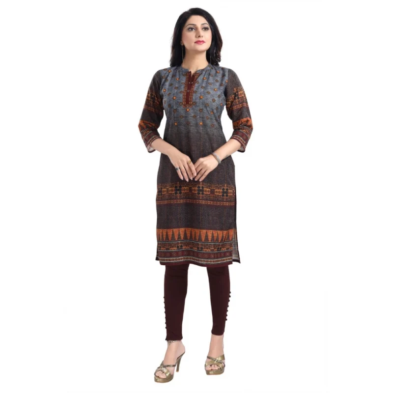 Women’s 3/4th Sleeve Cotton Blend Tunic Long Kurti (Brown)