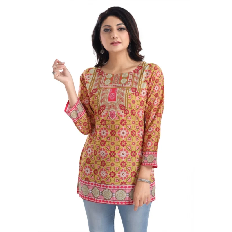 Women’s 3/4th Sleeve Faux Crepe Tunic Short Top (Multicolor)