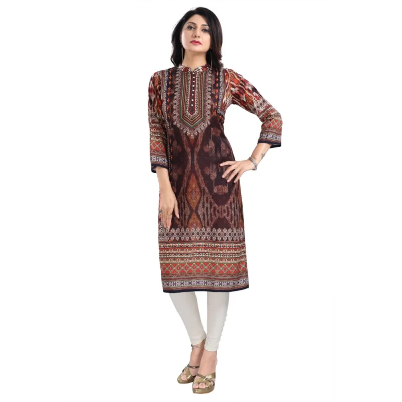 Women’s 3/4th Sleeve Masleen Tunic Long Kurti (Brown)