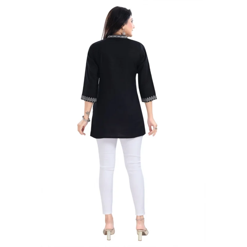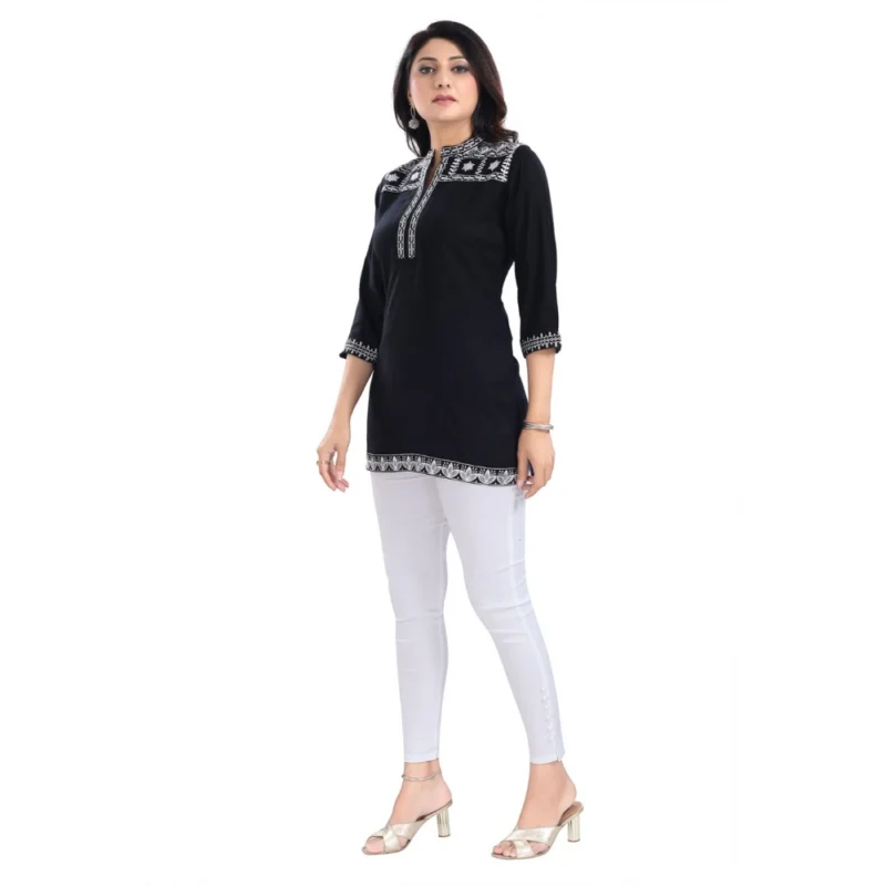 Women’s 3/4th Sleeve Viscose Tunic Short Top (Black)